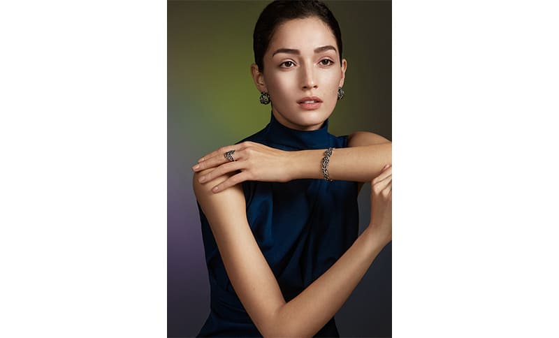 Den Anfang macht die Kollektion "Ringe Farbig" mit Ringen, die tierische Formen in Silber mit einem erkennbaren und modernen Touch wieder aufleben lässt. In jedem Ring umgibt das Motiv aus der Tierwelt einen Quarz mit Facettenschliff und bildet eine schön finissierte Einfassung. Vier Ringe, vier verschiedene Steine: der Leopard mit zitronenfarbenem Quarz, die Schlange mit amethystfarbenem Quarz, die Meeresschildkröte mit aquamarinfarbenem Quarz, das Krokodil mit grünem Quarz.