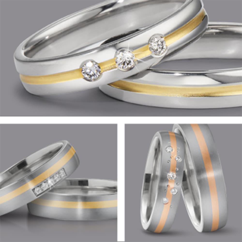 Ein Hauch klassische Eleganz umgibt die Farmkombinationen Titan mit Gelb- und Roségold, die aufgrund ihrer unaufdringlichen Schönheit sowohl bei Frauen als auch bei Männern sehr beliebt sind. Auch hier gibt es neue Designs in schmaleren Ringbreiten zu entdecken. Noch einmal höchster Tragekomfort und ideal für Paare, für die das Gewöhnliche einfach zu normal ist.