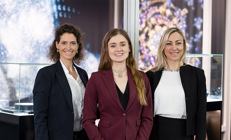 Scarlett Clauss (Mitte) mit ihren Kolleginnen Ruth Wermes (l.) und Michaela Gailer vom deutschen Osmium- Institut.