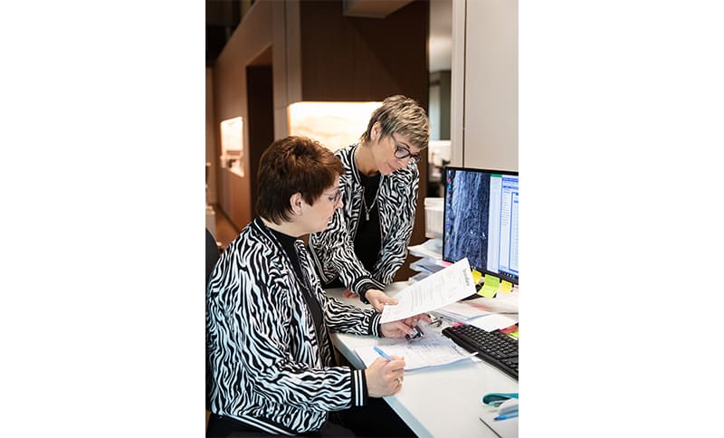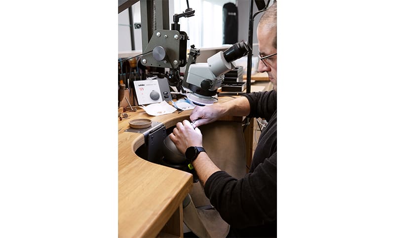 Kein Wunder, dass die DiamondGroup auf Messen wie der Inhorgenta Munich immer für viel Furore sorgt. Das Team ist motiviert, alle ziehen an einem Strang und streben danach, eine perfekte Leistung für die Kunden zu erbringen. „Kundenzufriedenheit ist für uns das A und O“, so Anke Schmidt. „Das fängt bei der Qualitätsprüfung an.“ Alle Schmuckstücke werden eingehend von Experten geprüft und dann erst für den Versand freigegeben. Frank Heringer: „Wir pflegen das Vier-Augen-Prinzip: Zwei unabhängige Spezialisten kontrollieren den Schmuck.“ In der hauseigenen Goldschmiedewerkstatt stehen modernste Maschinen und natürlich auch traditionelle Goldschmiedetische. Hier können Individualisierungen wie Gravuren, Weitenänderungen oder Servicearbeiten ausgeführt werden. Zudem werden die Diamanten aus der eigenen Datenbank je nach Bestellung gefasst und können so am Bestelltag in den Versand gehen. Auch Auftragsannahme und Vertrieb richten sich nach den Bedürfnissen der Kunden. Frank Heringer: „Wir führen den Versand auch im Namen des Juweliers direkt an den Endkunden durch, der Absender bleibt er.“ Und es gibt eine eigene Marketingabteilung mit einem Fotografen und Grafikern. Sie produzieren die Bilder und Texte, gestalten die Haus- und Kundenkataloge, Displays, bereiten Postings und Internetauftritte auf.