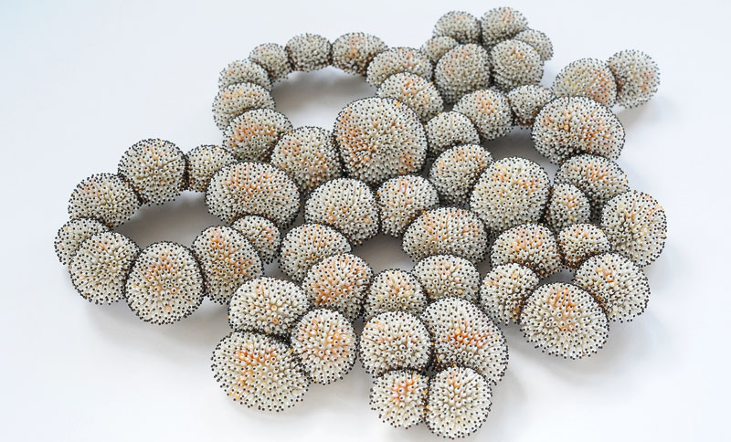 Broschen »Add«; oxidiertes Silber, Süßwasserreiskornperlen, Nylon; Sam Tho Duong, Pforzheim 2021; Foto Sam Tho Duong