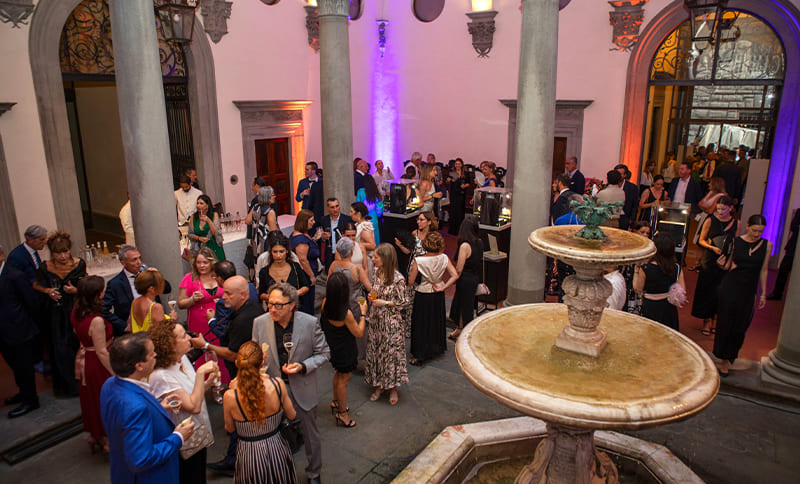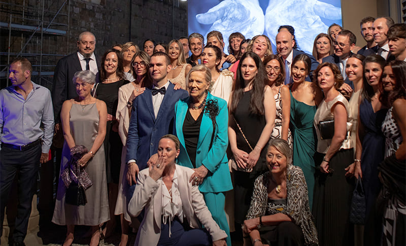Zum Jubiläum organisierte das Unternehmen eine Veranstaltung, die seine Gäste auf eine außergewöhnliche Reise durch Kunst und Schönheit der Stadt mitnahm. Sie konnten so die Seele des Unternehmens und die Inspirationsquellen seine Designs live erleben. Die Route begann auf der Piazza della Signoria, wo die Gäste die Cammilli-Boutique besuchten und an der Loggia dei Lanzi Halt machten, um anschließend an einer exklusiven Führung durch die Uffizien teilzunehmen. Zu diesem besonderen Anlass konnten Cammillis Gäste die großen Meisterwerke der florentinischen Kunst bewundern. Anschließend zog die Veranstaltung in den historischen Palazzo Gondi, einen der berühmtesten florentinischen Renaissancepaläste. Während des Abends konnten die Freunde des Hauses ein reichhaltiges Unterhaltungsprogramm und einen privilegierten Blick auf die Stadt von der Terrasse des Palazzo genießen. Zudem durften sie einem Cammilli-Goldschmied dabei zusehen, wie er einige Kreationen zum Leben erweckte. Der Höhepunkt des Abends war die Präsentation des Firenze-Rings, der der Stadt gewidmet ist, der Wiege der Kunst und Schönheit, die seit jeher die Kreativität der Marke Cammilli beherbergt und inspiriert hat. Ihn gibt es in einer limitierten Auflage von 40 Stück. Als symbolischen Moment, um die Hommage an Florenz zu unterstreichen, widmete Annamaria Cammilli „Firenze“ Florenz und überreichte dem höchsten Amt der Stadt, dem Bürgermeister Dario Nardella, ein einzigartiges Werk, das die Künstlerin für diesen Anlass geschaffen hat.