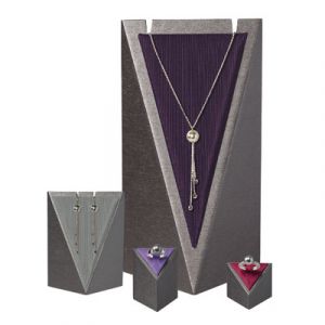 Auch im Bereich Schmuckpräsentation und -dekoration dürfen sich die Kunden auf spannende Neuheiten freuen. So überzeugt beispielsweise die Schmuckständer-Serie „Trocadero“ durch ihren extravaganten, anthrazitfarbenen, metallischen Look. Die Schmuckauflage auf der Vorderseite ist in vielen verschiedenen Überzugsstoffen erhältlich und dadurch individuell an alle Wünsche anpassbar.