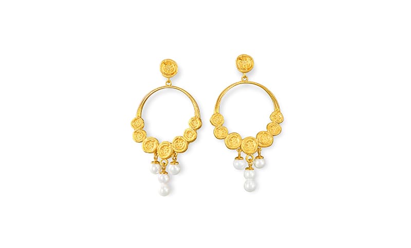 Ohrhänger „Rosanna“ und Ohrschmuck „Francesca“, beides mit Süßwasser- perlen und 24-Karat-Goldplattierung.