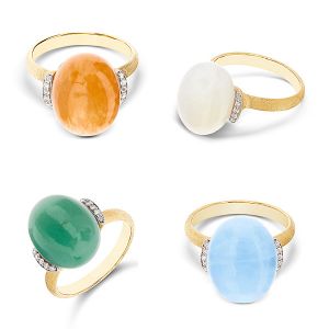 Die Kollektion „Amuleti“ mit Edelstein-Cabochons und Diamanten, gefasst in Gelbgold.