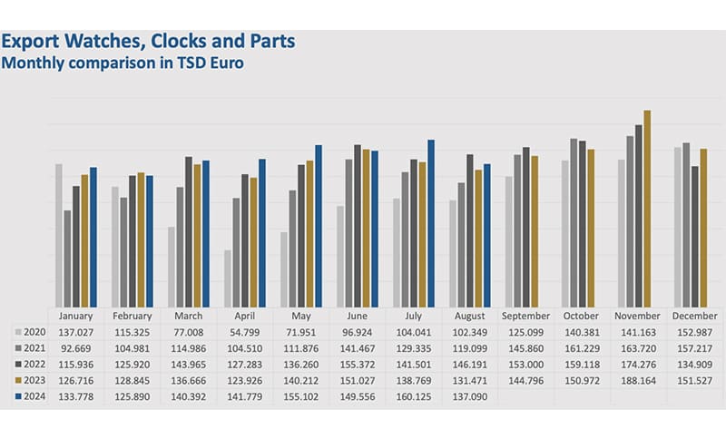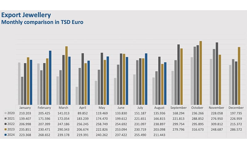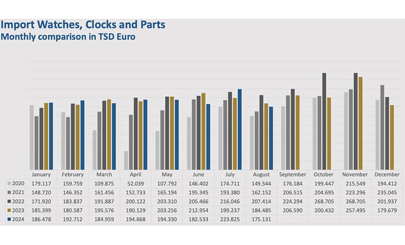 Schmuck- und Uhrenexporte weiterhin schwach