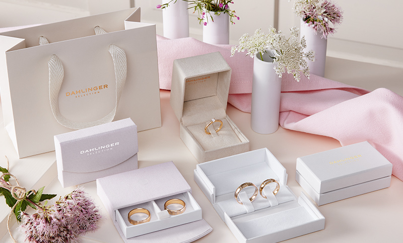Die neuen Trauringetuis der Serie „Alliance 130“ von Dahlinger zeigen sich auf der ...