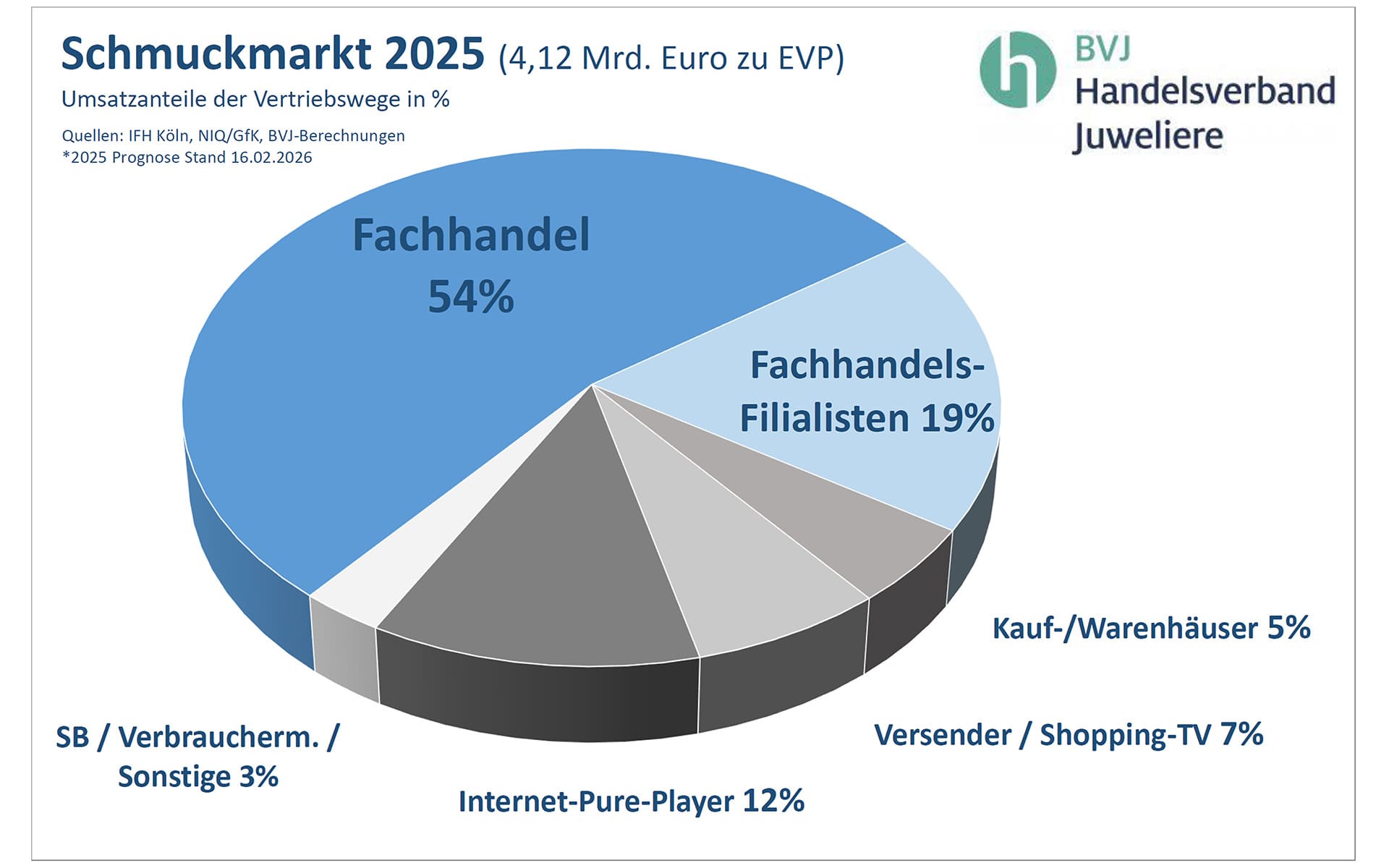 Der Fachhandel bleibt dominierender Vertriebsweg und konnte seine Marktanteile sogar leicht ausbauen. Im Schmuckbereich liegt der wertmäßige Anteil bei 73 Prozent, bei Uhren bei 68 Prozent. „Wir verkaufen Emotionen. Das funktioniert im Geschäft und mit Fachberatung augenscheinlich besser als am Bildschirm“, erklärt Lindner. Vertrauen spielt beim Kauf von Gold und Diamanten eine zentrale Rolle. „Offensichtlich vertraut der Kunde dem Juwelier vor Ort mehr.“