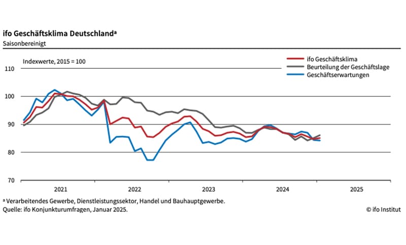 Der ifo Geschäftsklimaindex für den Januar 2025 zeigt einen leichten Aufwärtstrend. Die Stimmung der Unternehmen in Deutschland hat sich demnach gegenüber dem Dezember verbessert – mit einem Haken.