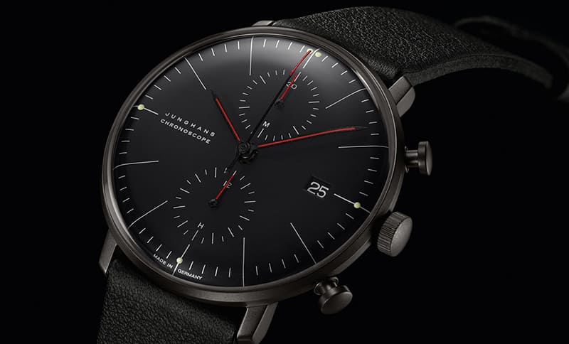 Kompromisslos Schwarz: Den „Junghans Max Bill-Chronscope Bauhaus“ gibt es ab sofort ganz in Schwarz.