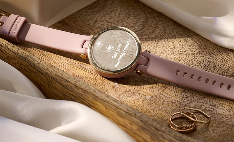 Mit ihrem 34 Millimeter breiten Gehäuse ist „Lily“ die kleinste Smartwatch von Garmin und schmiegt sich auch an schmale Handgelenke ideal an. Das vom Vintage-Stil inspirierte, gemusterte Display ist perfekt auf die Farben der Armbänder abgestimmt und macht die Uhr zum zeitlosen Accessoire. Raffiniert: Durch Antippen wird das helle, gut ablesbare Touchdisplay sichtbar.