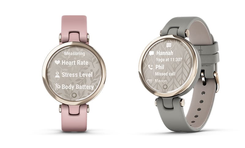 So stellt „Lily“ dank der „Body Battery“-Funktion und der Stresslevelmessung den ganzen Tag über Informationen zum Energie- und Stresslevel bereit. Ist der Stresspegel zu hoch, hilft sie mit Tipps und der Kontrolle von Atemübungen wieder zu mehr Ruhe. Zudem kann mit der Smartwatch kontrolliert werden, ob genug Flüssigkeit getrunken wurde und wie hoch der Kalorienverbrauch der bereits zurückgelegten Schritte ist. Lily misst fortlaufend auch die Herzfrequenz. Ein Alarm bei zu hohen oder niedrigen Werten lässt sich individuell konfigurieren. Unterwegs, beim Sport oder bei der Arbeit hält Lily ihre Trägerin über eingehende Anrufe, Social-Media-Updates und alle wichtigen News auf dem Laufenden.
