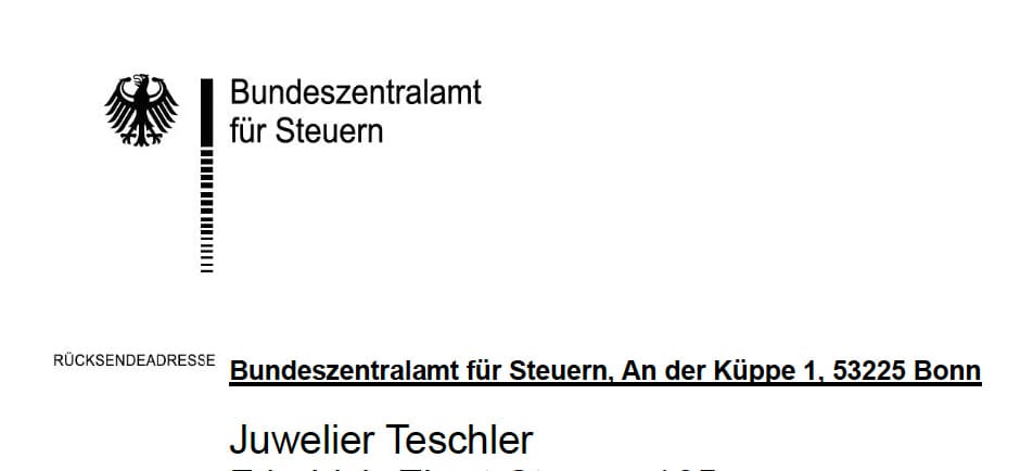 Das Schreiben sah sehr offiziell aus. Briefkopf des „Bundeszentralamt für Steuern“ aus Bonn, mit Bundesadler und jeder Menge Aktenzeichen und Ansprechpartnern. Der Name des Sachbearbeiters, Horst Schmidt, erweckt wenig Zweifel, eher der Ländercode der IBAN-Nummer, es ist „IE“ für Irland, statt „DE“, da die Bundeszentrale ja in Bonn sitzt.