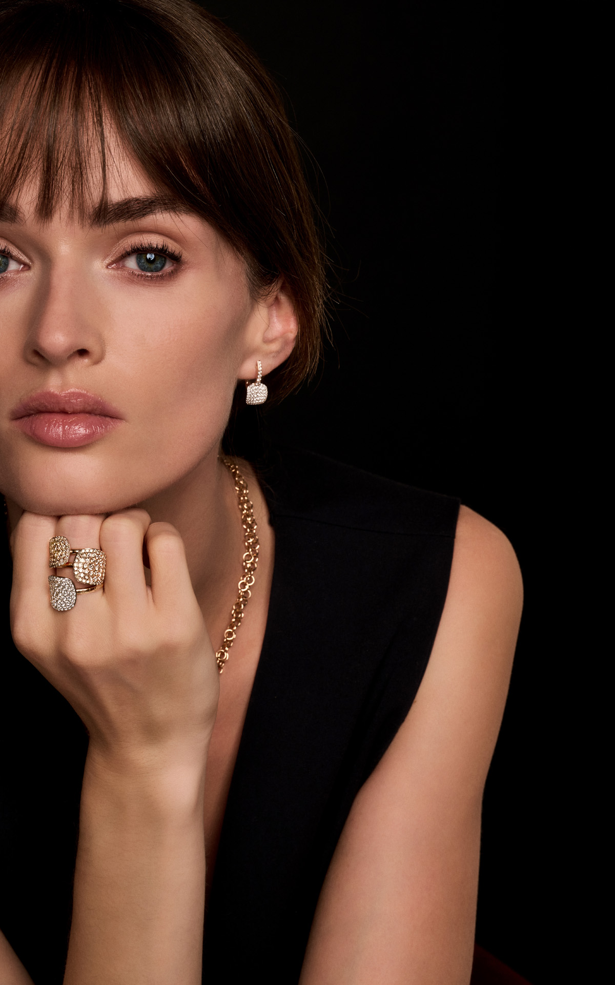 Die Kollektion umfasst vier Ringe, zwei Anhänger, drei Paar Ohrringe sowie eine Halskette. Jedes Schmuckstück ist um einen zentralen Diamanten aufgebaut, der von fein abgestuften kleineren Diamanten umrahmt wird. Besonders opulent zeigt sich der größte Ring mit insgesamt 53 Diamanten und 1,26 ct. Die Designs lassen sich einzeln minimalistisch tragen oder wirkungsvoll kombinieren.